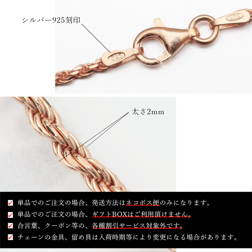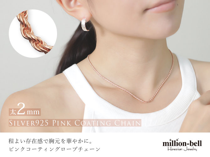 ハワイアンジュエリー シルバー925 ピンク ロープ ネックレスチェーン 太さ2mm SCH24