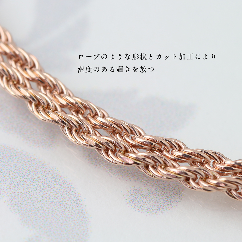 | 商品説明 | ハワイアンジュエリーには定番最適なロープチェーンです。フレンチカットが施されているので,角度によって光が反射し,キラキラ輝くのが特徴です。 |