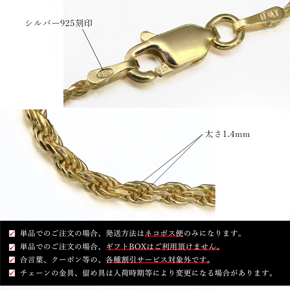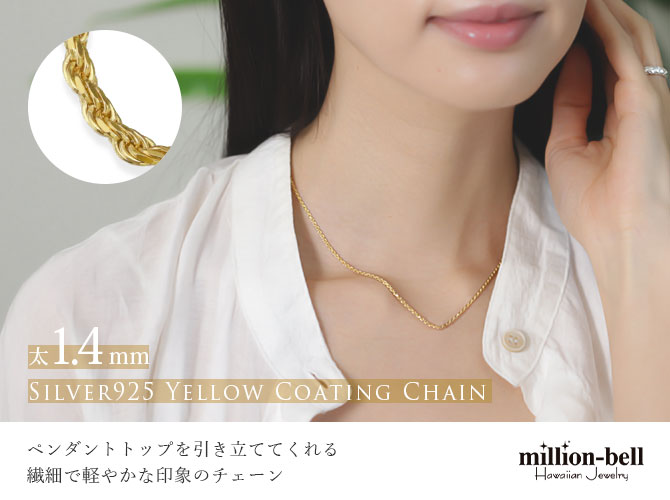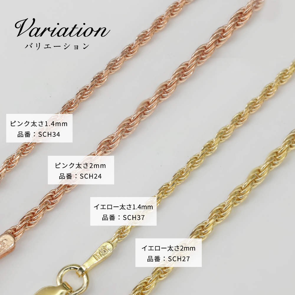 ハワイアンジュエリー シルバー925 イエロー ロープ ネックレスチェーン 太さ1.4mm SCH37