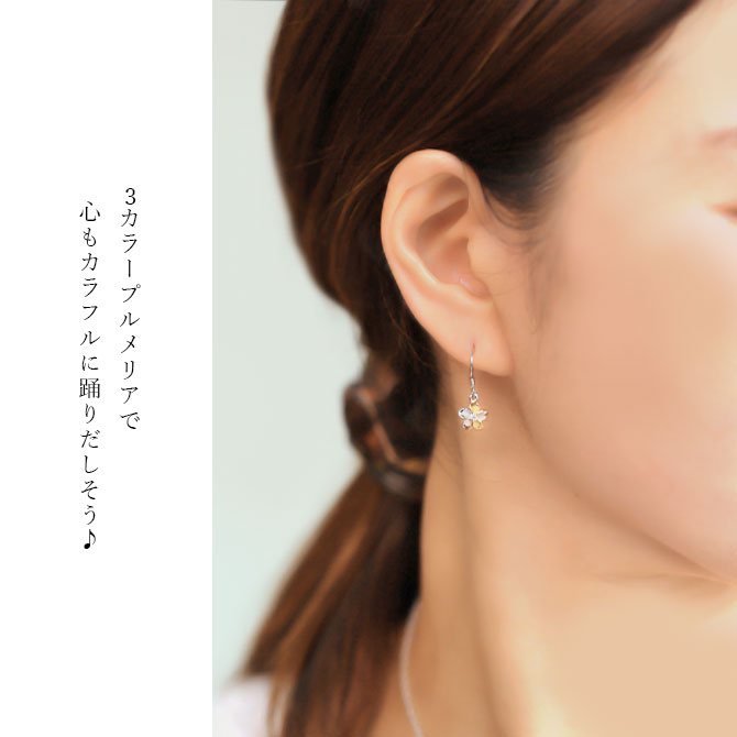 揺れる3カラーのプルメリアが心躍る華やかピアス